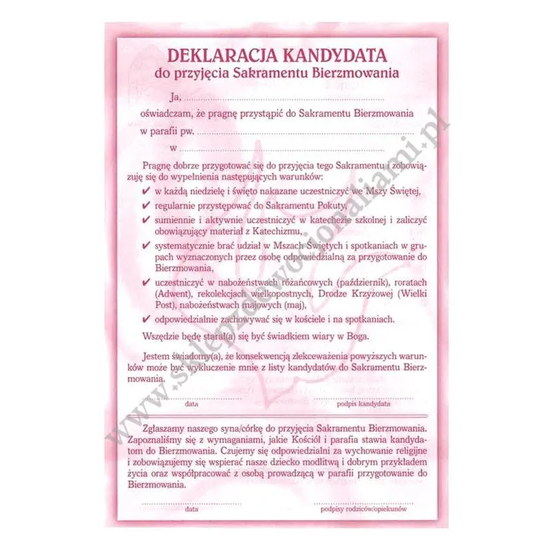 - Uzyskaj akceptację swoją kandydatury oraz czekaj na ceremonię bierzmowania.